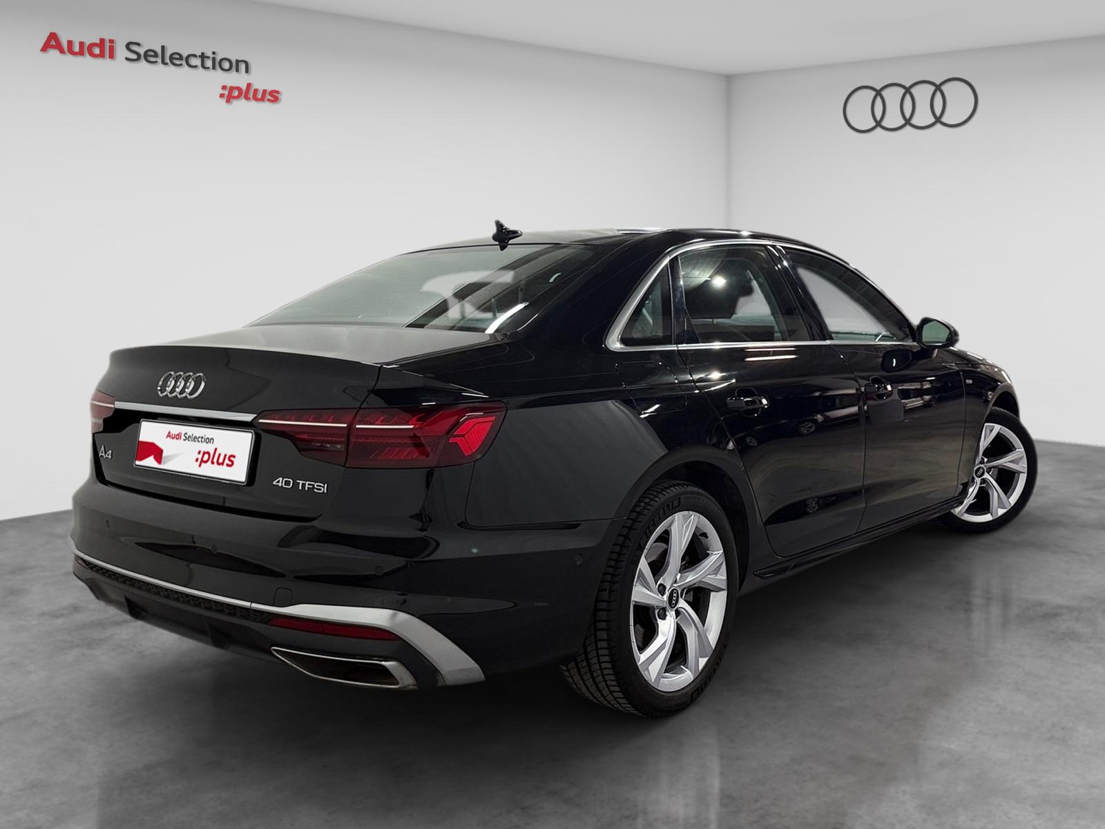 *PVP recomendado en Península y Baleares de 33.200,00 € para un Audi A4 40 TFSI S line S tronic 150kW (IVA, transporte, impuesto de matriculación, descuento de marca y concesionario y bonificación Volkswagen Bank GmbH S.E. incluidos), financiando a través de Audi Financial Services según condiciones contractuales. Com. de apertura: 2,95% (798,29€). TIN: 7,95%. Importe total adeudado: 21.066,60€. Este precálculo se emite a efectos meramente informativos, sin tener carácter de oferta vinculante y sin sustituir a la información precontractual regulada en la ley de Contratos de Crédito al Consumo. La aprobación de estas condiciones de financiación estará sujeta al estudio de la valoración económica del cliente por parte de Audi Financial Services. Audi Financial Services es una marca comercializada por Volkswagen Bank GmbH S.E.. Avda. Bruselas, 34 - 28108 Alcobendas (Madrid) Reg. Mercantil de Madrid. Tomo 16828, Sección 8, Folio 184, Hoja M-287573, Inscrita con el nº 1480 del Reg. Especial del Banco de España – CIF. W-0042741I